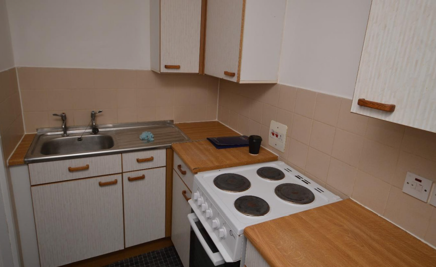 Studio Open Plan Lounge/Bedroom – This good sized living area has neutral decor and laminate flooring.